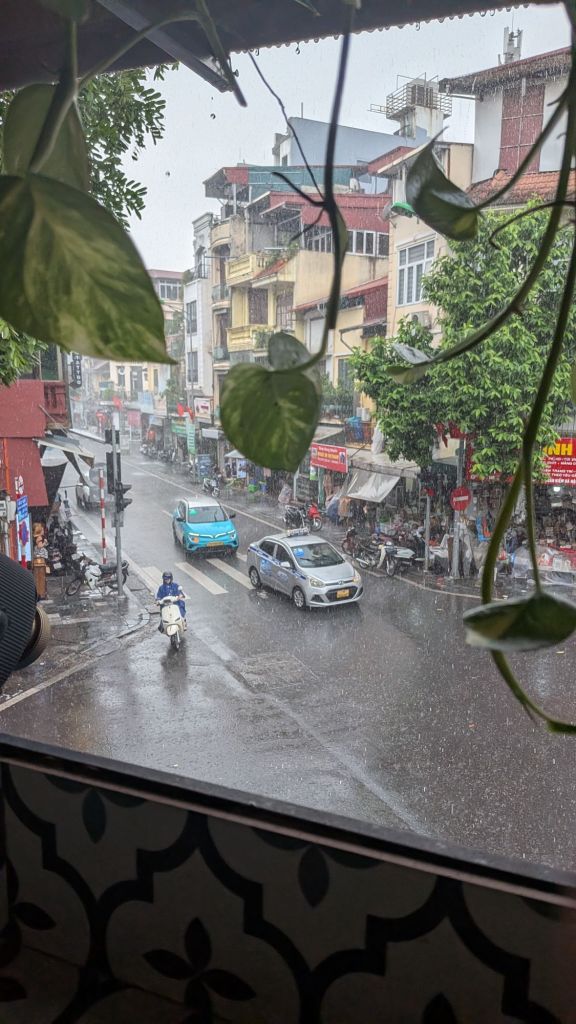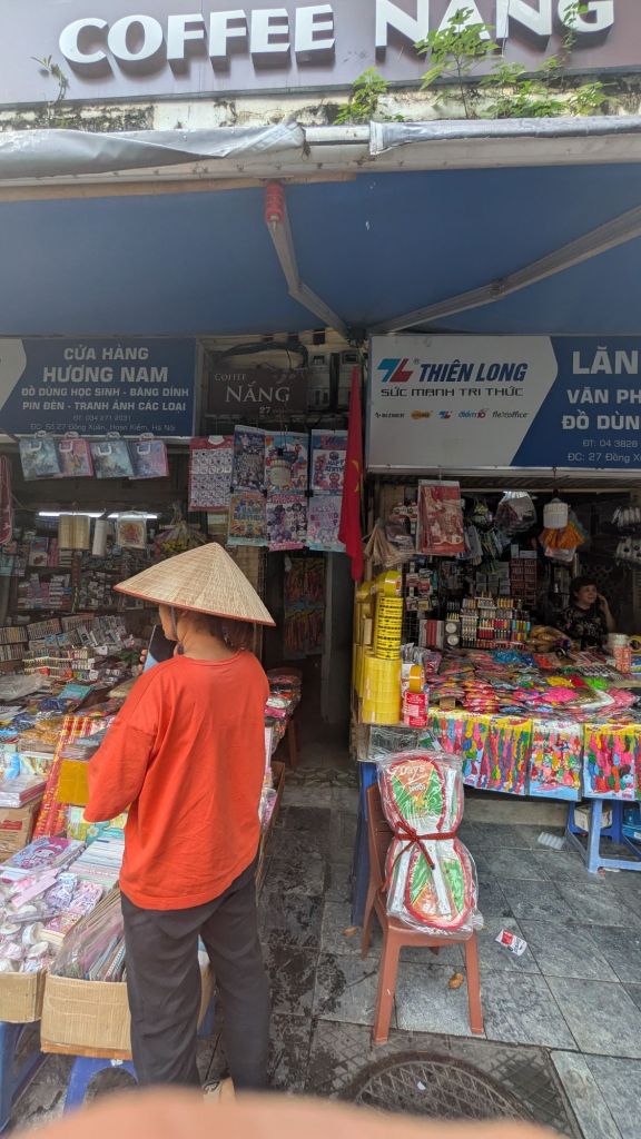It’s my second day here and I left my hostel with the intention of exploring outside the Old Quarter as I had yesterday. After walking along the Ho Hoan Kiem Lake, I looped around into the French Quarter of the city, aiming for a museum I’d spotted. Well, two hours of wandering have passed now and I haven’t found the museum but I’ve somehow ended up a six minute walk from my hostel, at Coffee Nang.